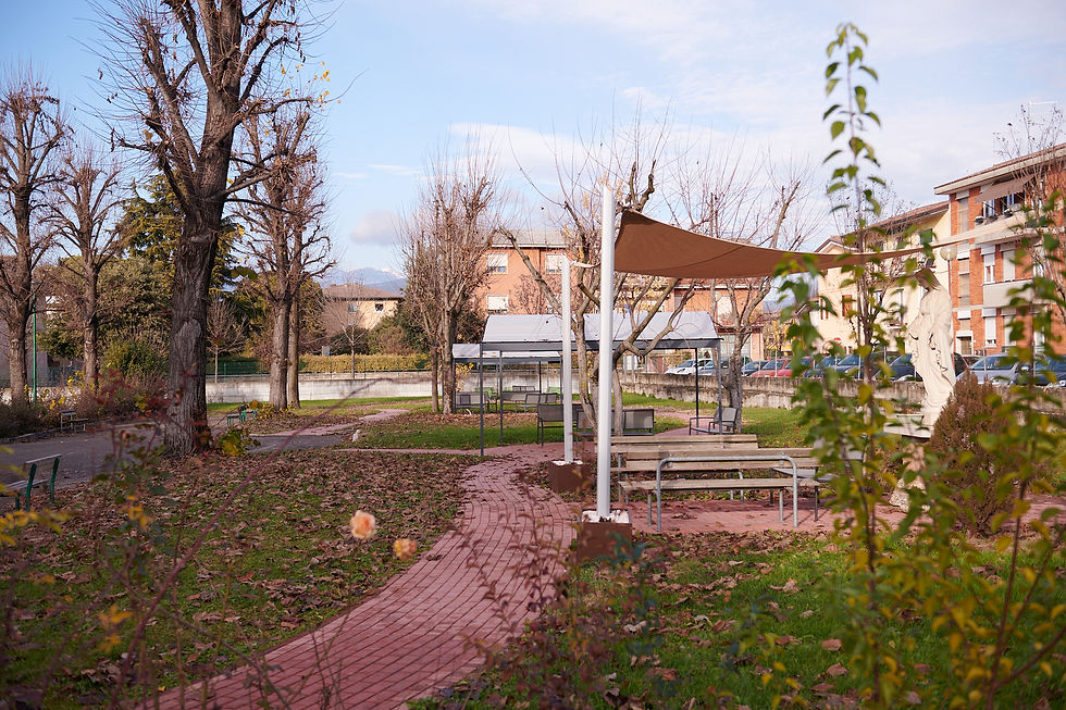 All’esterno sono inoltre presenti un ampio parcheggio parzialmente coperto da pannelli solari, un pergolato utile nei periodi in cui è possibile eseguire alcune attività all’aperto, due celle mortuarie, il deposito delle bombole per l’ossigeno ed una rimessa per gli attrezzi.